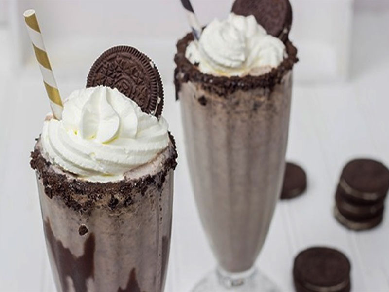 - Bước 1: Cho đá, sữa tươi, kem Rich’s, đường, sauce chocolate, bánh oreo vào cối xay.- Bước 2: Đậy nắp và nhấn nút xay