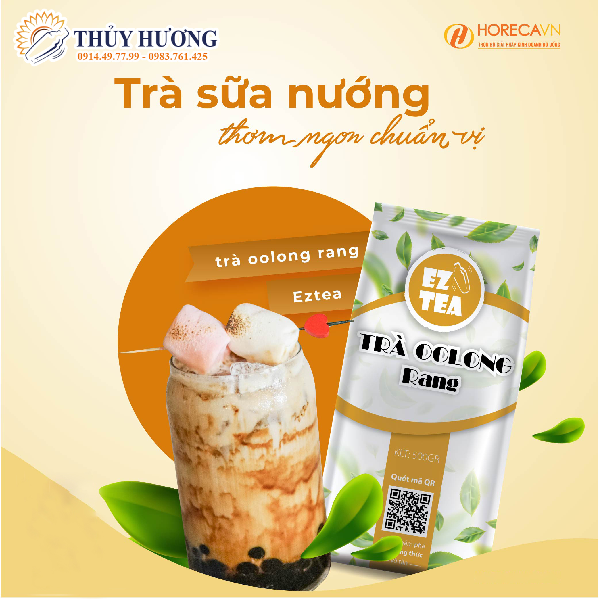 - Trà Oolong Rang EZTEA: nền trà Oolong Rang được sử dụng cho mọi món trà sữa nướng và trà sữa Hokkaido. Để ủ được một nền trà Oolong Rang EZTEA ngon đậm đà, bạn cần chuẩn bị 40gr trà, ủ cùng 1 lít nước nóng ở nhiệt độ 95-98 độ C trong vòng 10 phút. Sau đó lọc bỏ bã và thu được cốt trà nóng.