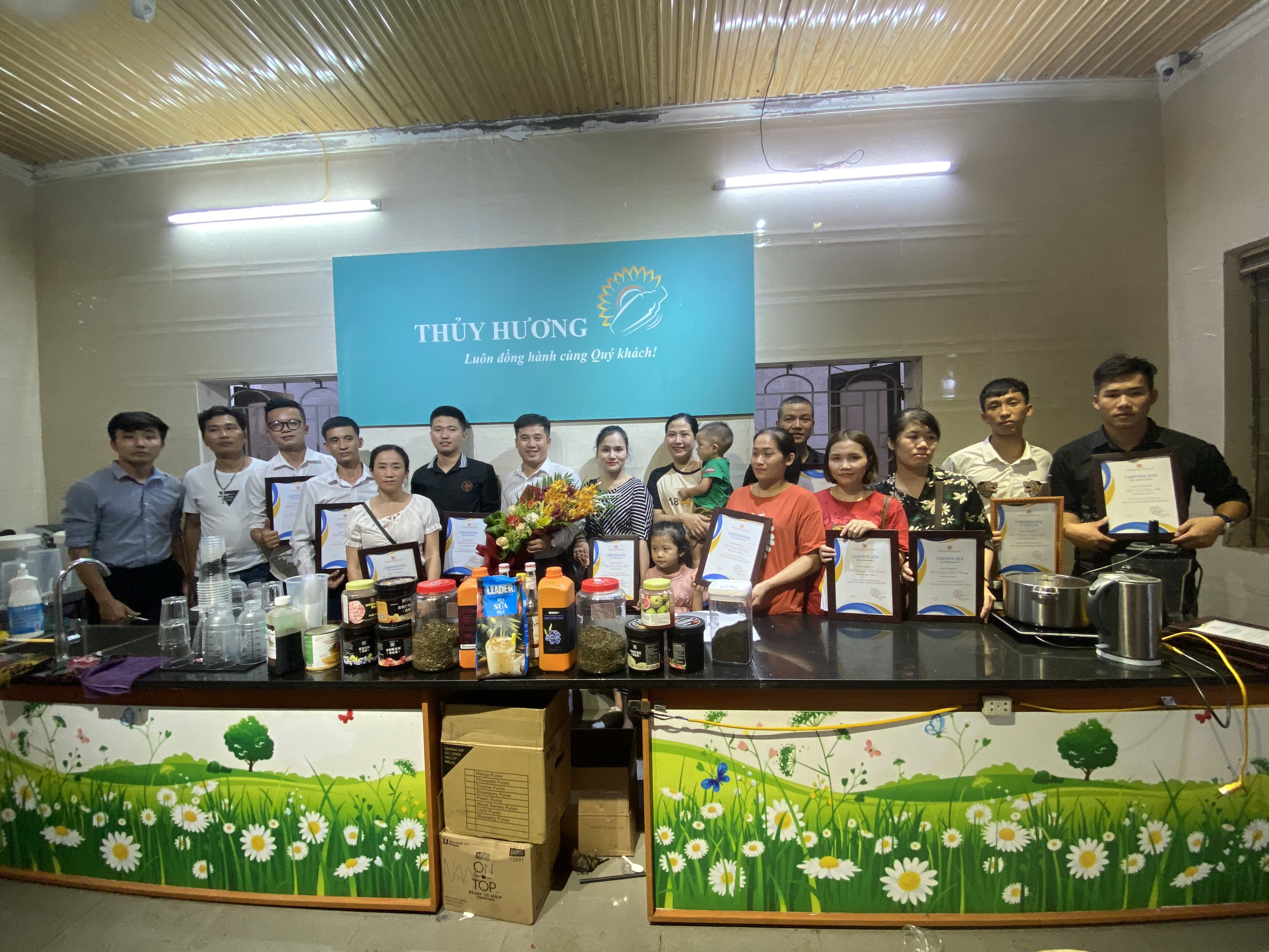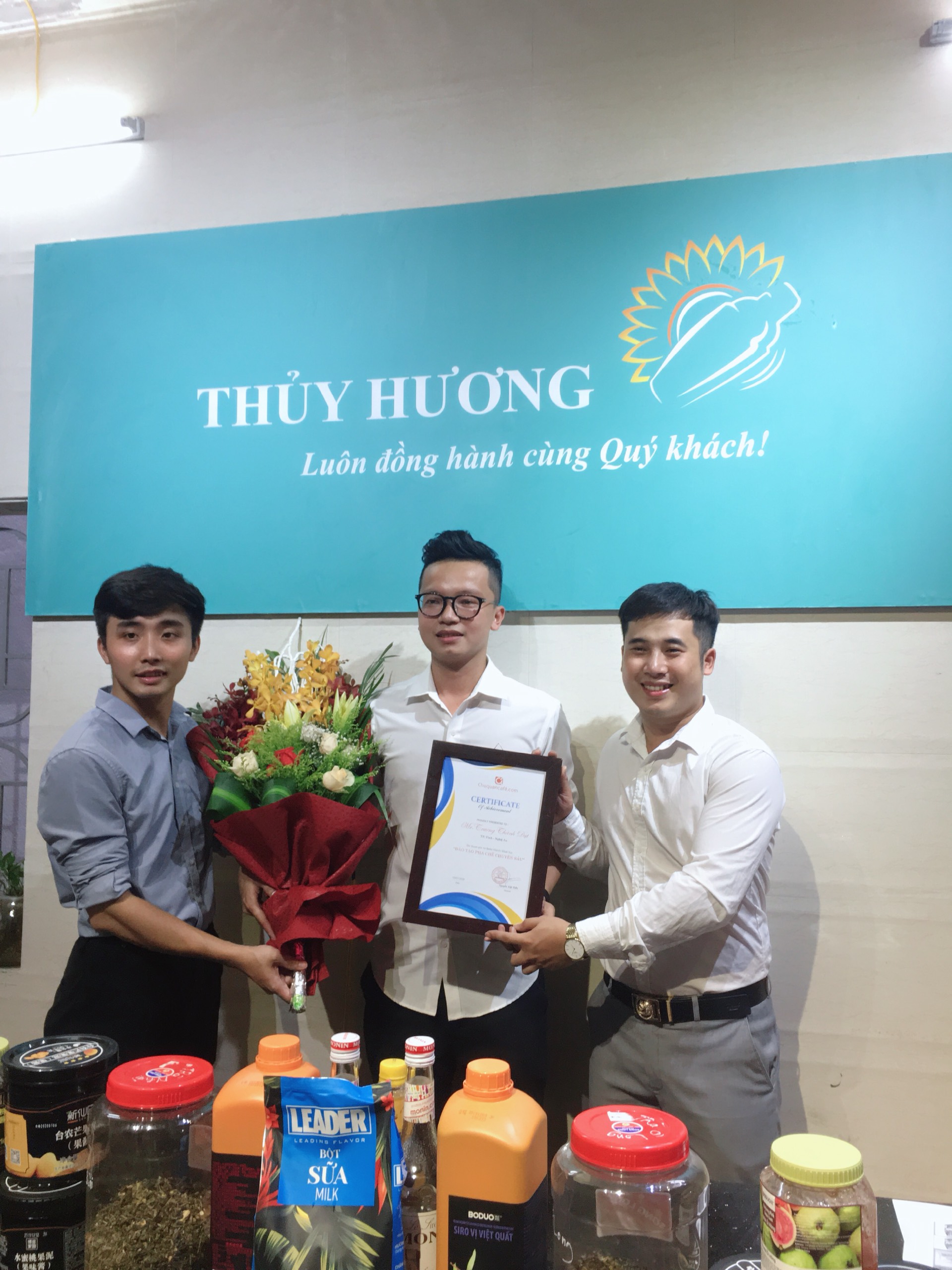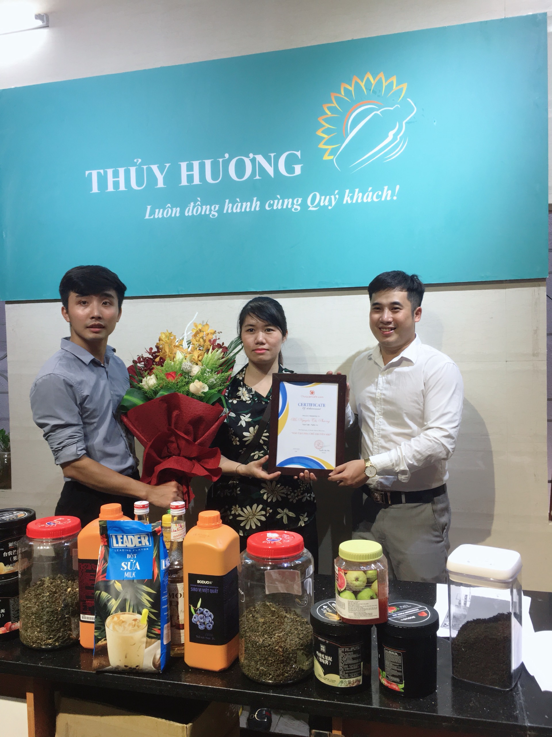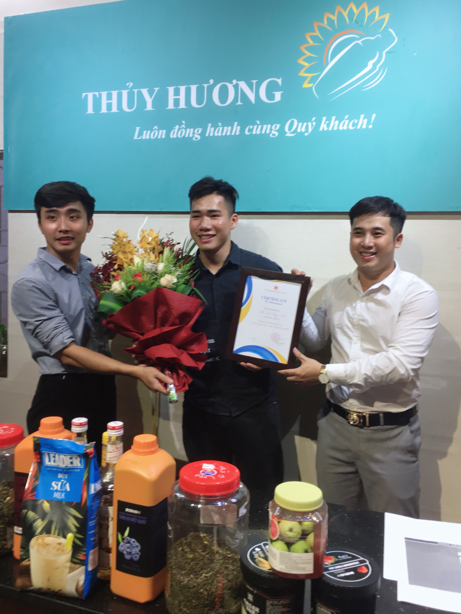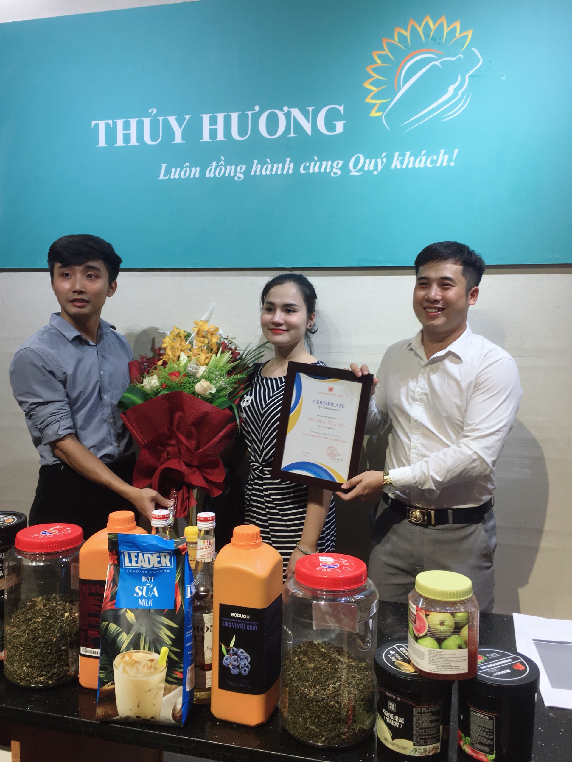 Thay mặt cho đông đảo học viên có mặt tại buổi lễ tốt nghiệp,cũng đã có những chia sẻ chân thành gửi đến các Thầy và nhân viên: “ Những kiến thức, bài học, kinh nghiệm phải mất hàng chục năm, phải đánh đổi bao nhiêu mồ hôi nhưng Thầy Cô đã sẵn sàng trao lại cho chúng em với lòng nhiệt tâm, niềm tin yêu và hi vọng. Xin cảm ơn các Thầy Cô vì đã ngày ngày tiếp thêm ngọn lửa đam mê, tình yêu nghề cho chúng em. Cảm ơn Nguyên Liệu Pha Chế Thủy Hương đã đồng hành kết nối tạo ra môi trường học tập chất lượng chuyên sâu với chúng em thời gian chỉ trải qua 2 buổi đào tạo nhưng những bài học, những kỷ niệm tại khóa học sẽ là hành trang quý giá để chúng em vận dụng, mang theo trên bước đường đời”.